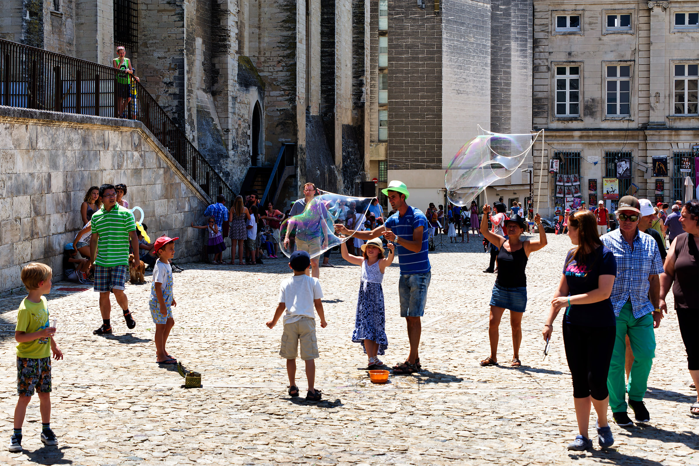 Fun with soap bubbles on the Place du Palais |