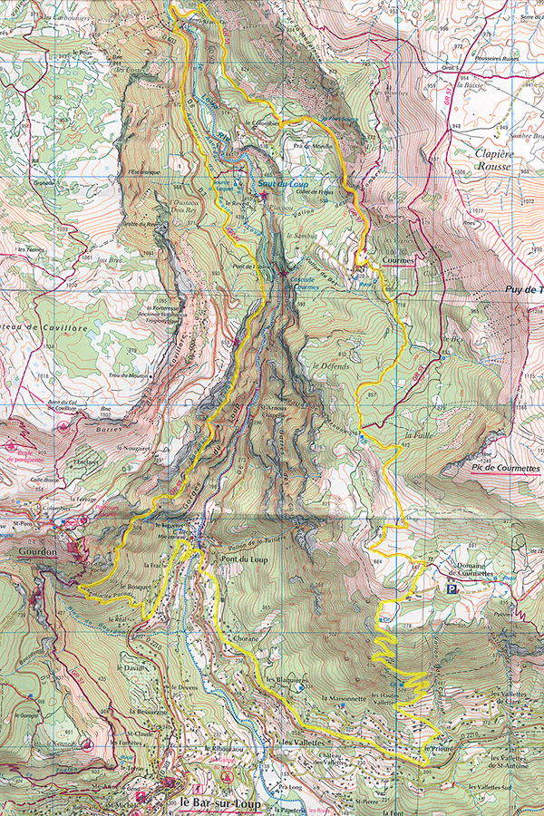 This page contains photos of a March 3, 2007 trek around the Gorges du Loup, a spectacular canyon that extends northwards from the village of Pont du Loup. The excursion follows the Aqueduc du Foulon all the way to the hamlet of Bramafan. There, one crosses the river and climbs first to Courmes, and then further up to the Plateau des Courmettes from where one has a spectacular view over the entire seaboard.