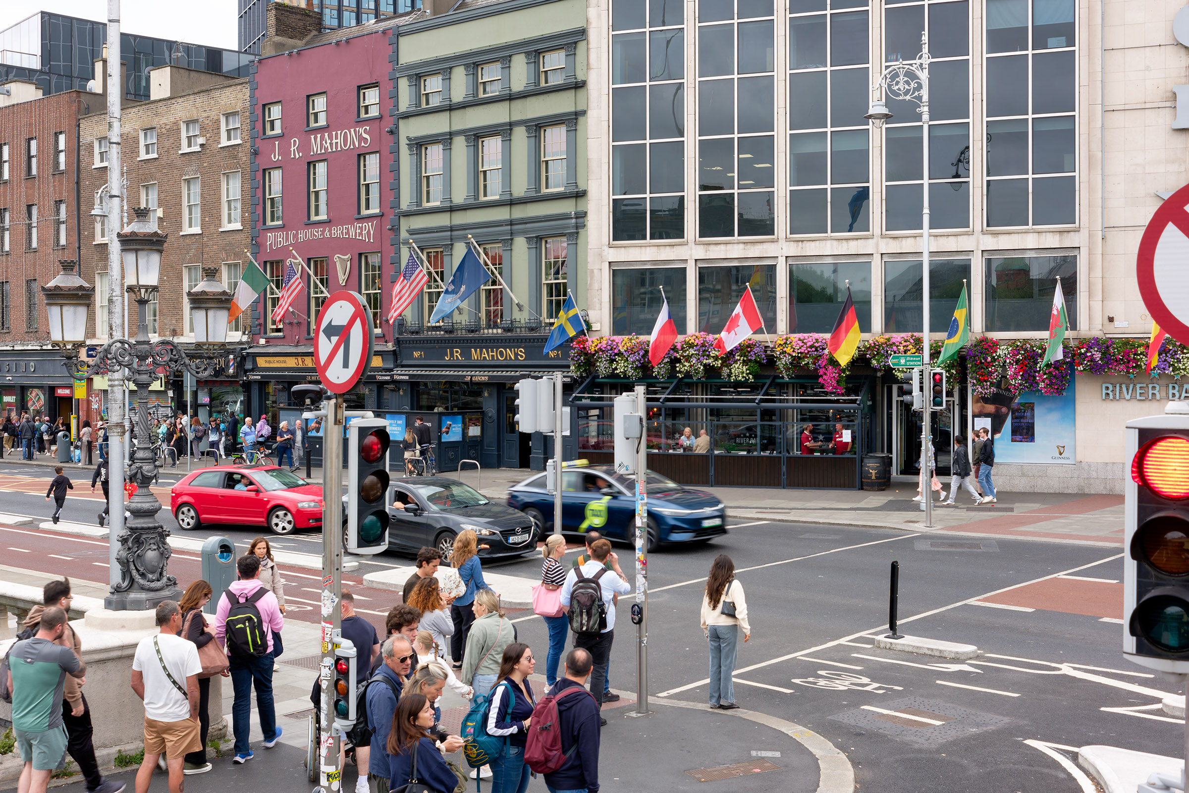 On the south side of the O'Connell Bridge |