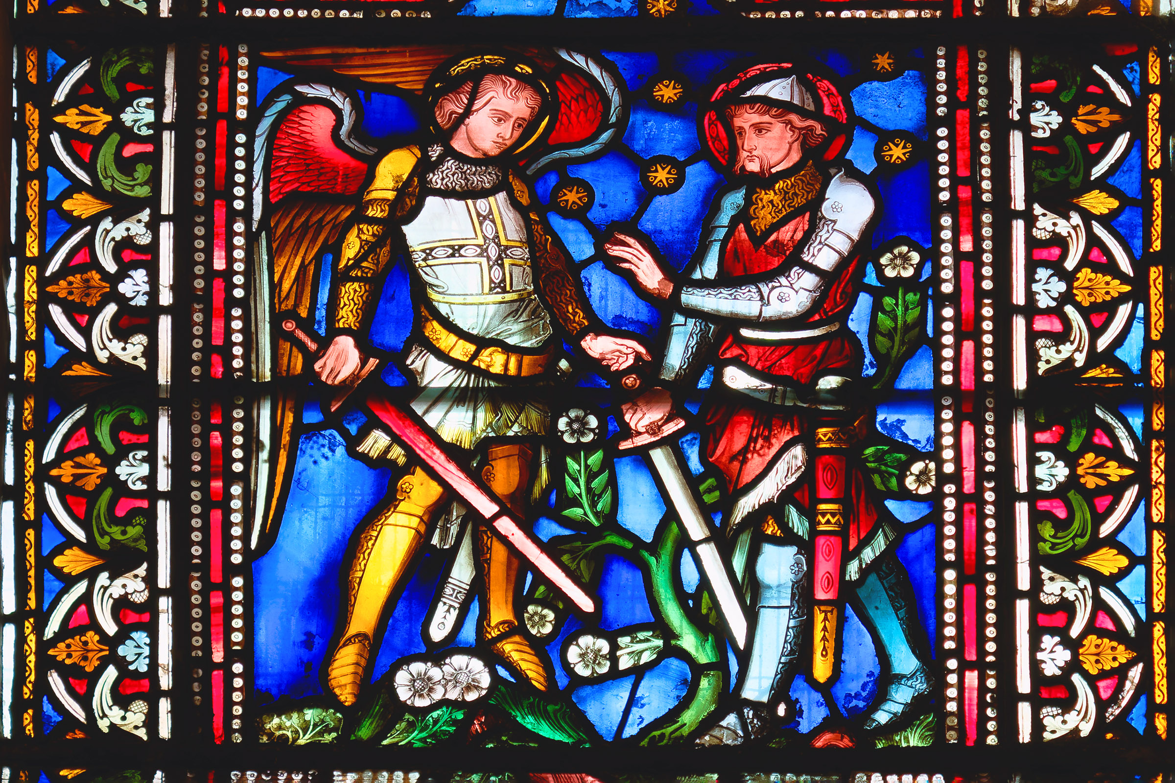 Detail of another stained glass window in the south aisle |