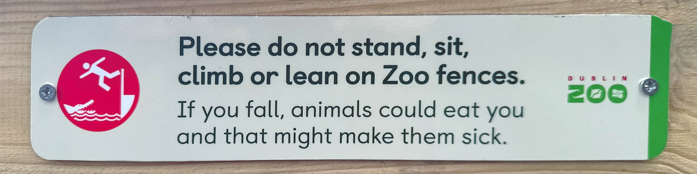 Signs like this are attached to most zoo fences: you have to love Irish humor! |
